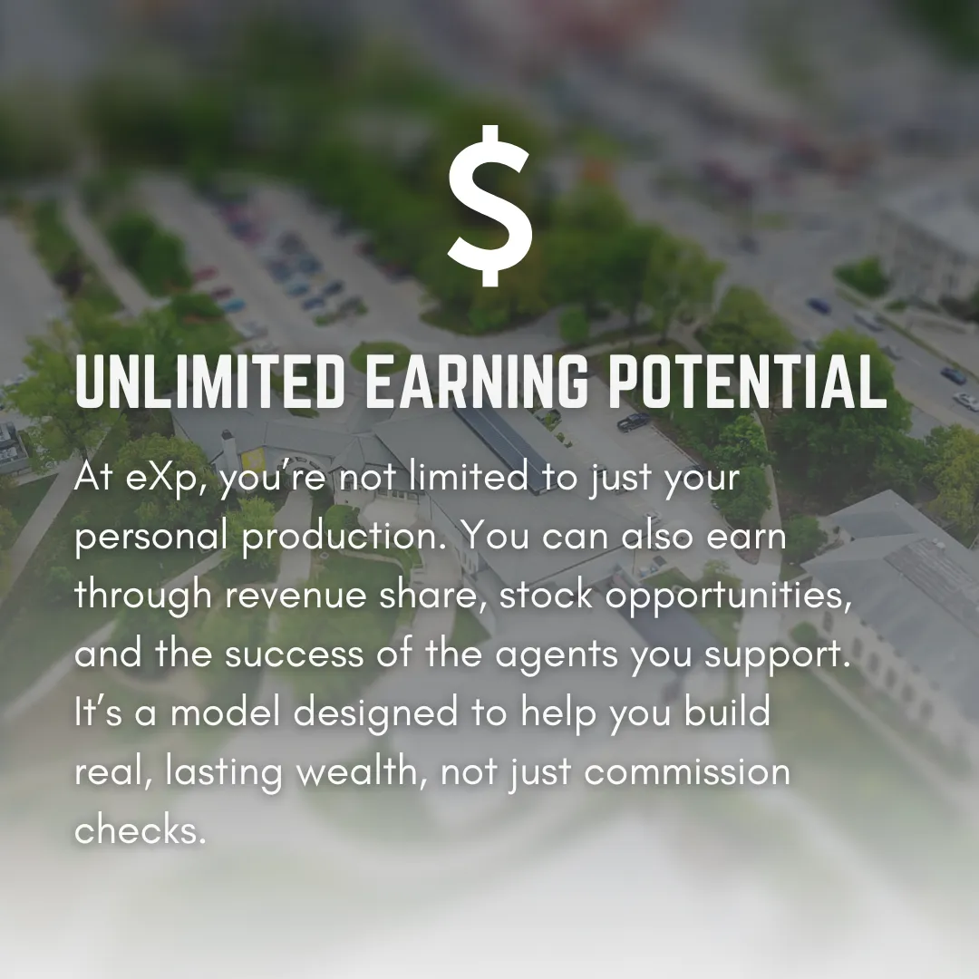 Explore what’s possible when your real estate business is no longer limited by a traditional brokerage model. At eXp Realty, agents have access to a collaborative environment, innovative technology, and opportunities designed for long-term growth. This is about expanding your vision, building leverage, and creating a business that evolves with the future of real estate—not one that holds you back.